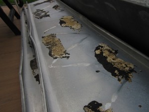 | |  | |  | |  | Falsche Verklebung der Abdeckung | | Auch mehr Kleber hilft nichts | | Beim Abheben durch Windsog wird sogar | | die Dämmung mit abgehoben |